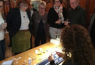 Die sehr interessierten Teilnehmerinnen durften im ersten Teil von Goldschmied Jürg Wipf die Besonderheiten und die Spezialität das Handwerks erfahren. Danach wurden in zwei Gruppen der Unterschied zwischen traditioneller Zeichentechnik mit Blei- und Farbstift und CAD-Design erörtert. Nach einer kurzen Pause mit Erfrischungen konnten die Teilnehmerinnen ihr eigenes Schmuckstück entwerfen und die Skizzen als Erinnerung nach Hause nehmen.
